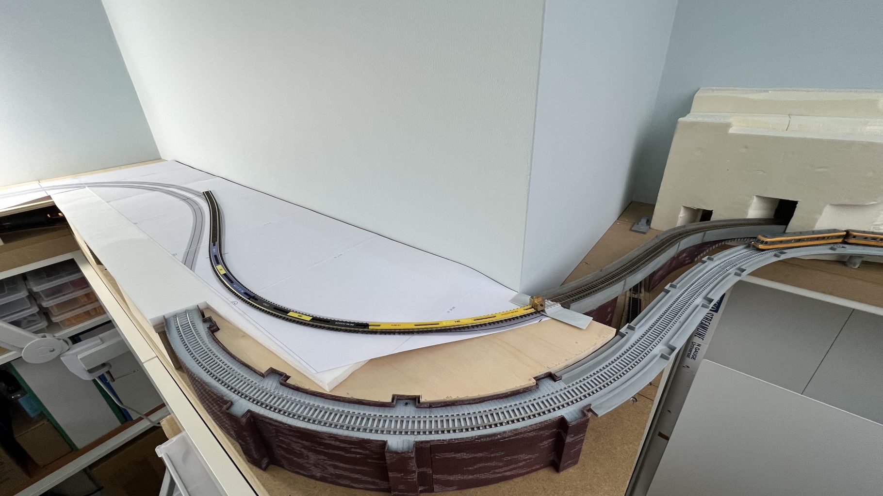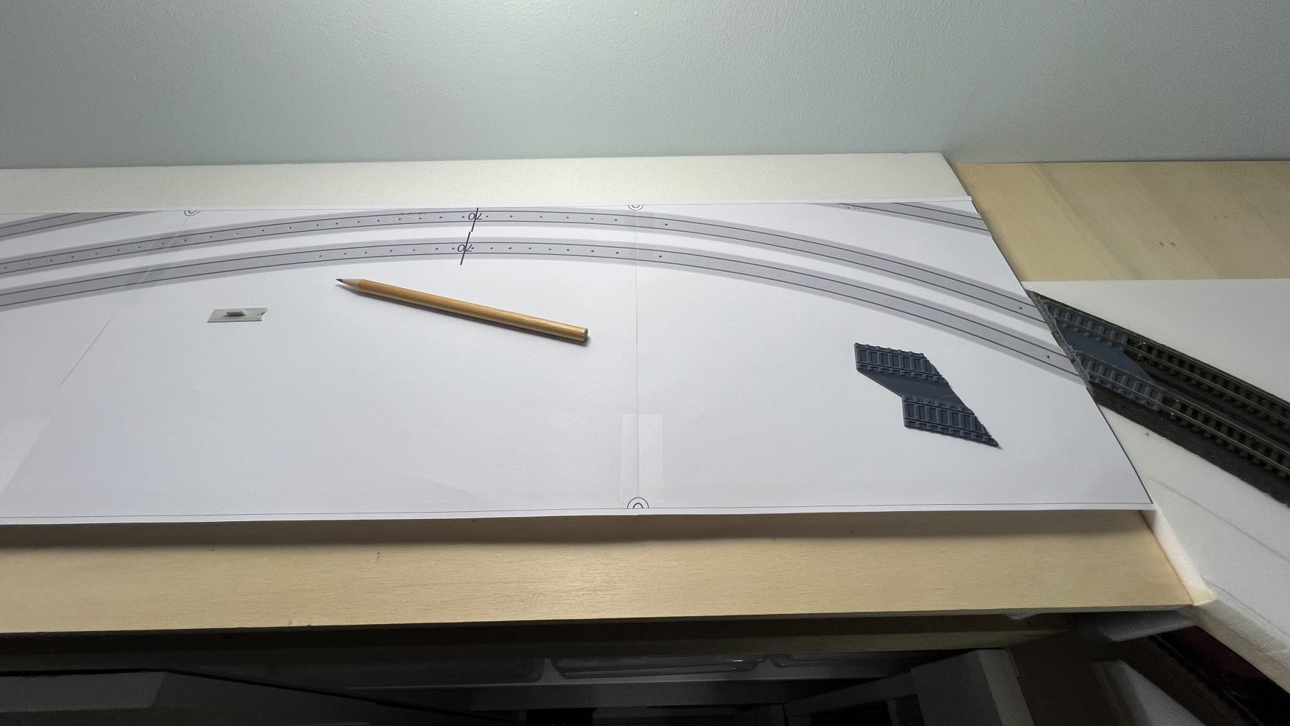 Le tracé a été défini avec le logiciel AnyRail, puis imprimé pour être reporté directement sur le module. Cela assure une implantation fidèle et régulière des voies.