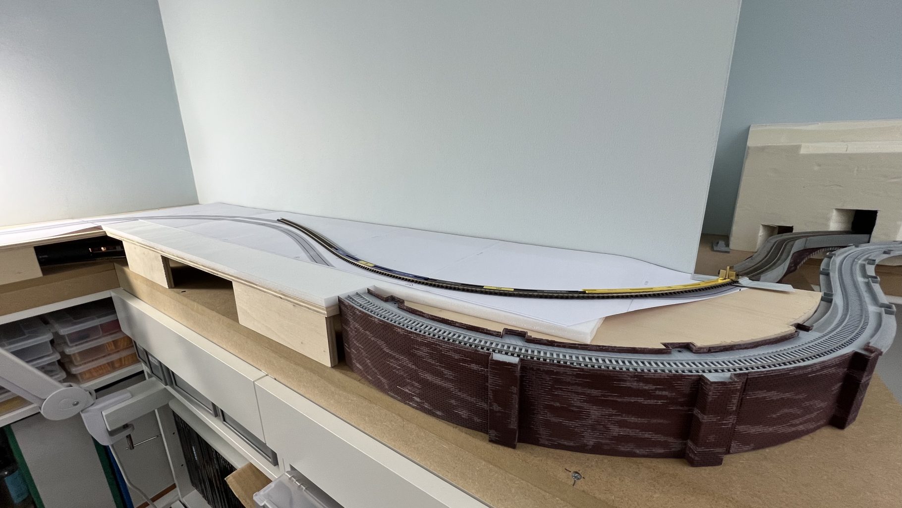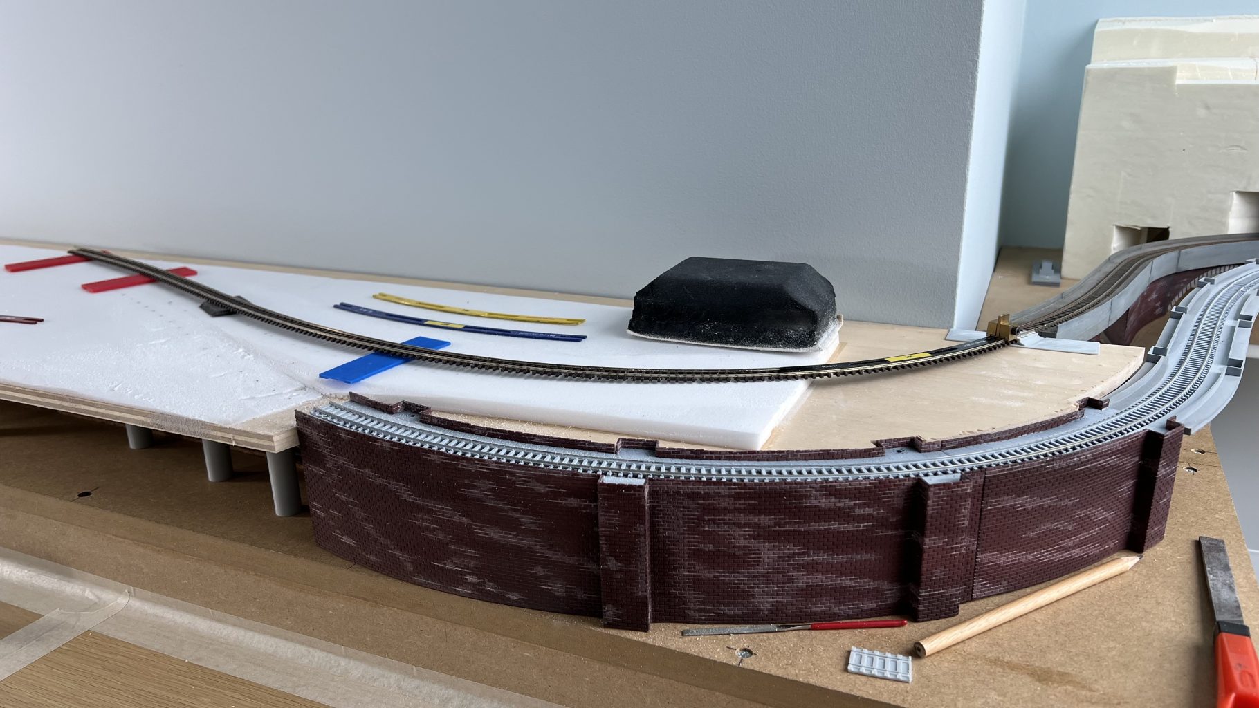 Les deux voies sont désormais reliées aux deux rampes. Le bord du module a été découpé de façon à ménager de la place à un relief négatif en façade :