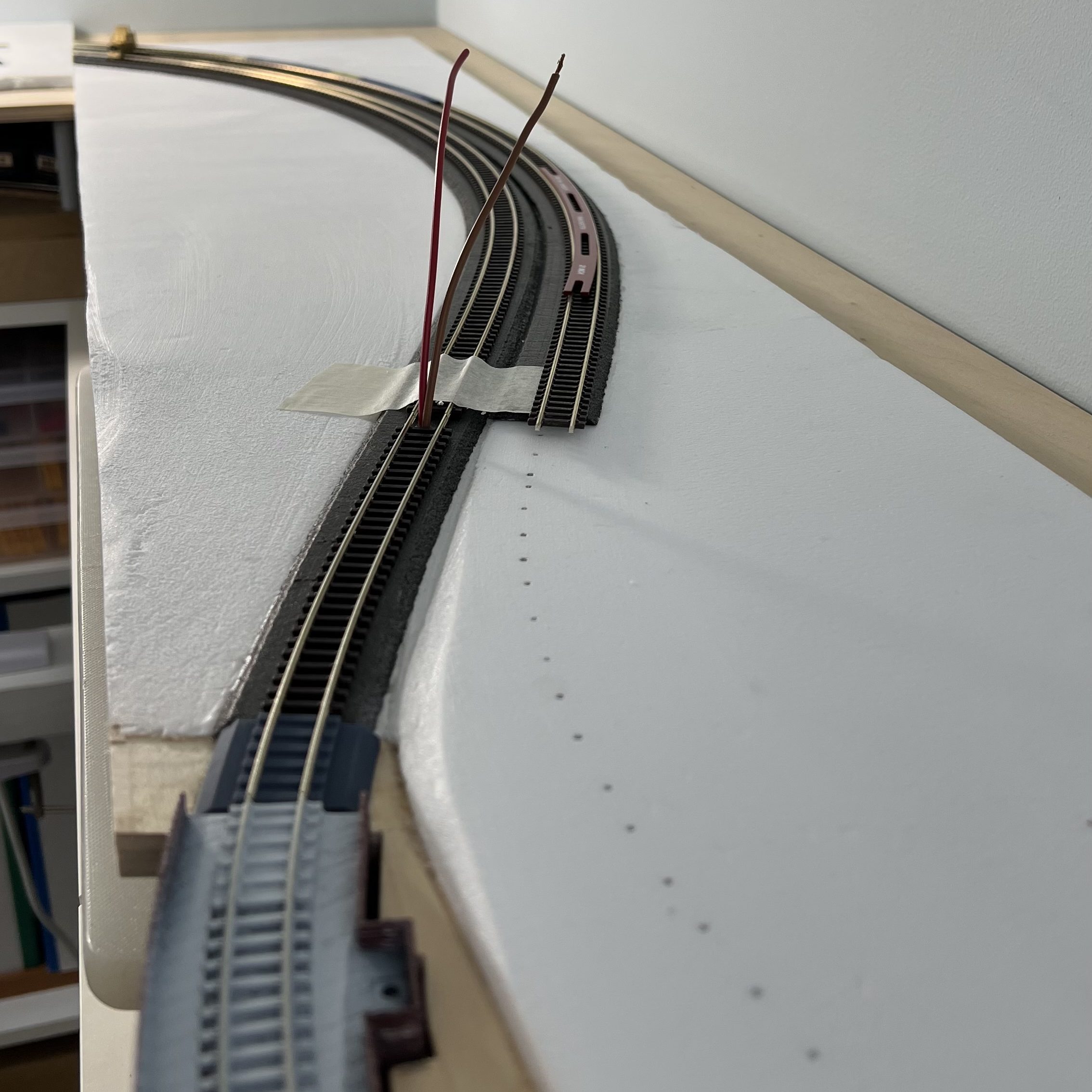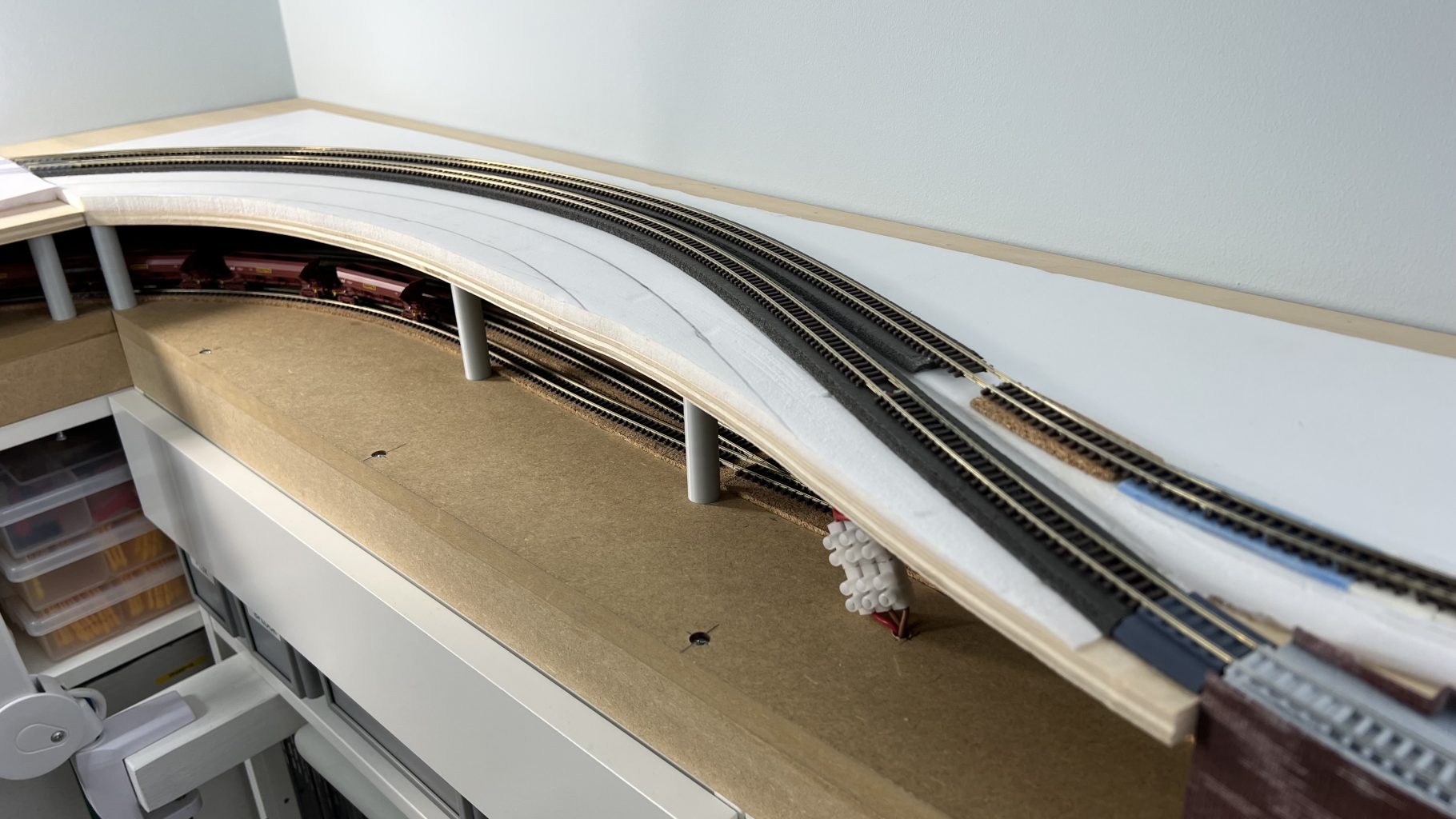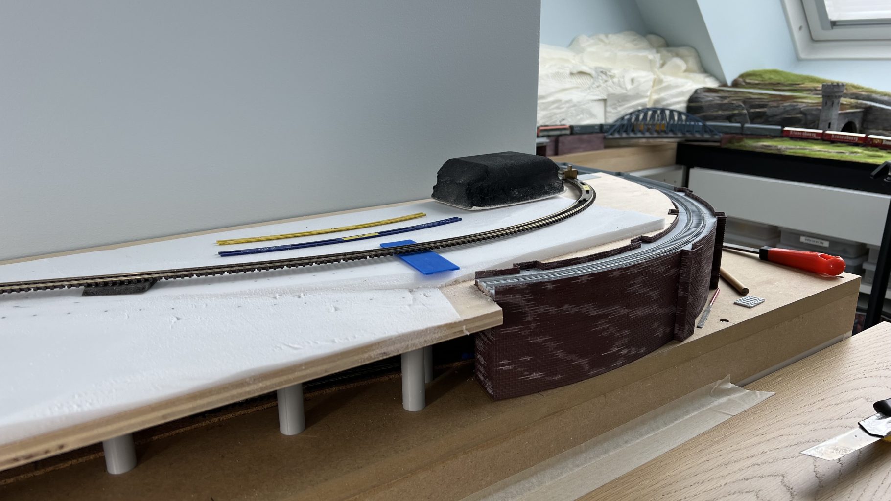 La semelle en mousse Woodland Scenics est ensuite collée, offrant à la fois confort sonore et stabilité.